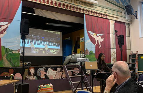 Hans sammensætning af fortælling, musik og fotos var enestående livlig, især i kraft af hans tilslutning af tangenterne fra hans klaver vist på det store lærred.