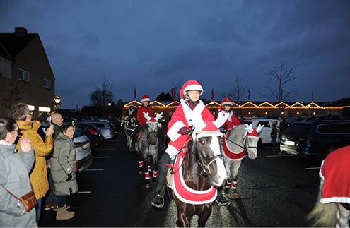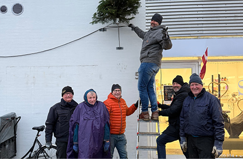 Forinden var Bymidten blevet behørigt pyntet op med små juletræer på husgavlene af ildsjælene fra Skibby Aktive.