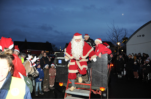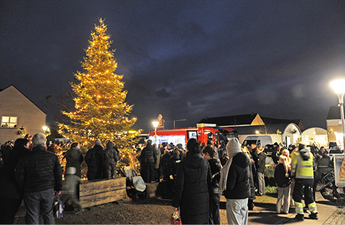 Julemanden ankom traditionen tro i hestevogn anført af ryttere fra Skibby Ride- og Voltigeklub. Brandfolkene kørte deres brandbiler frem, som alle kunne kigge nærmere på, og senere kom julemanden helt til tops for at tænde juletræet, der strålede i vintermørket.