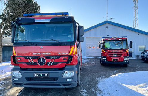 Nytårsparolen i Lejre Brandvæsen foregik på station Kirke Hyllinge på endnu en smuk vinterdag. Foto: Lejre Kommune