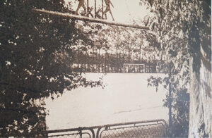 Indgang til stadion ( KKI ) Kyndby Krogstrup idrætsplads indviet i 1945. Anlagt som beskæftigelsesprojekt efter krigen. Idrætspladsen, og var, inden den blev anlagt, genstand for mange kontroverser mellem det daværende sogneråd og ejeren af Svanholm, som måtte afgive jorden, der ifølge ham var hans bedste agerjord. Foto: Kent Ustrup