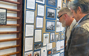 Gæsterne kunne fortabe sig i en tidslinje fra de syv årtier med Skuldelev Skole. Foto: Fjordlandsskolen afdeling Skuldelev
