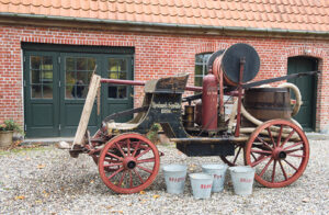 Den gamle brandsprøjte, der engang havde til huse i brandsprøjtehuset, fotograferet inden den store juleoppyntning gik i gang.