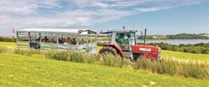 Tag med på en af de mange ture og oplev skøn natur, lokale ildsjæle, interessante historier og seværdigheder. Alt sammen fra den hyggelige traktortrukne vogn med lokal chauffør.