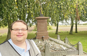 Nicolai Pandorff ved Bille-Brahe monumentet på Krogstrup Kirkegård. Til daglig er Nicolai kirkeværge ved Kyndby og Krogstrup Kirker.