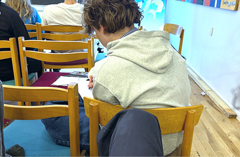 I løbet af dagen prøvede eleverne kræfter med kreative øvelser, som “ordbingo” og skrivning inspireret af den amerikanske forfatter Joe Brainard, hvor hver sætning begyndte med “Jeg kan huske…”.